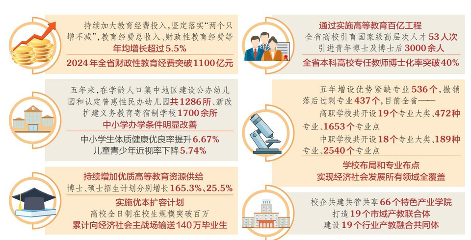 教育是國之大計、黨之大計,也是每個家庭的心頭事?!笆奈濉币詠?,在省委、省政府堅強(qiáng)領(lǐng)導(dǎo)下,全省教育系統(tǒng)深入貫徹落實習(xí)近平總書記關(guān)于教育的重要論述,全面貫徹黨的教育方針,堅定落實教育優(yōu)先發(fā)展戰(zhàn)略,有力推動“十四五”規(guī)劃各項指標(biāo)任務(wù)全面完成,為“十五五”時期加快建設(shè)教育強(qiáng)省奠定了堅實基礎(chǔ)。