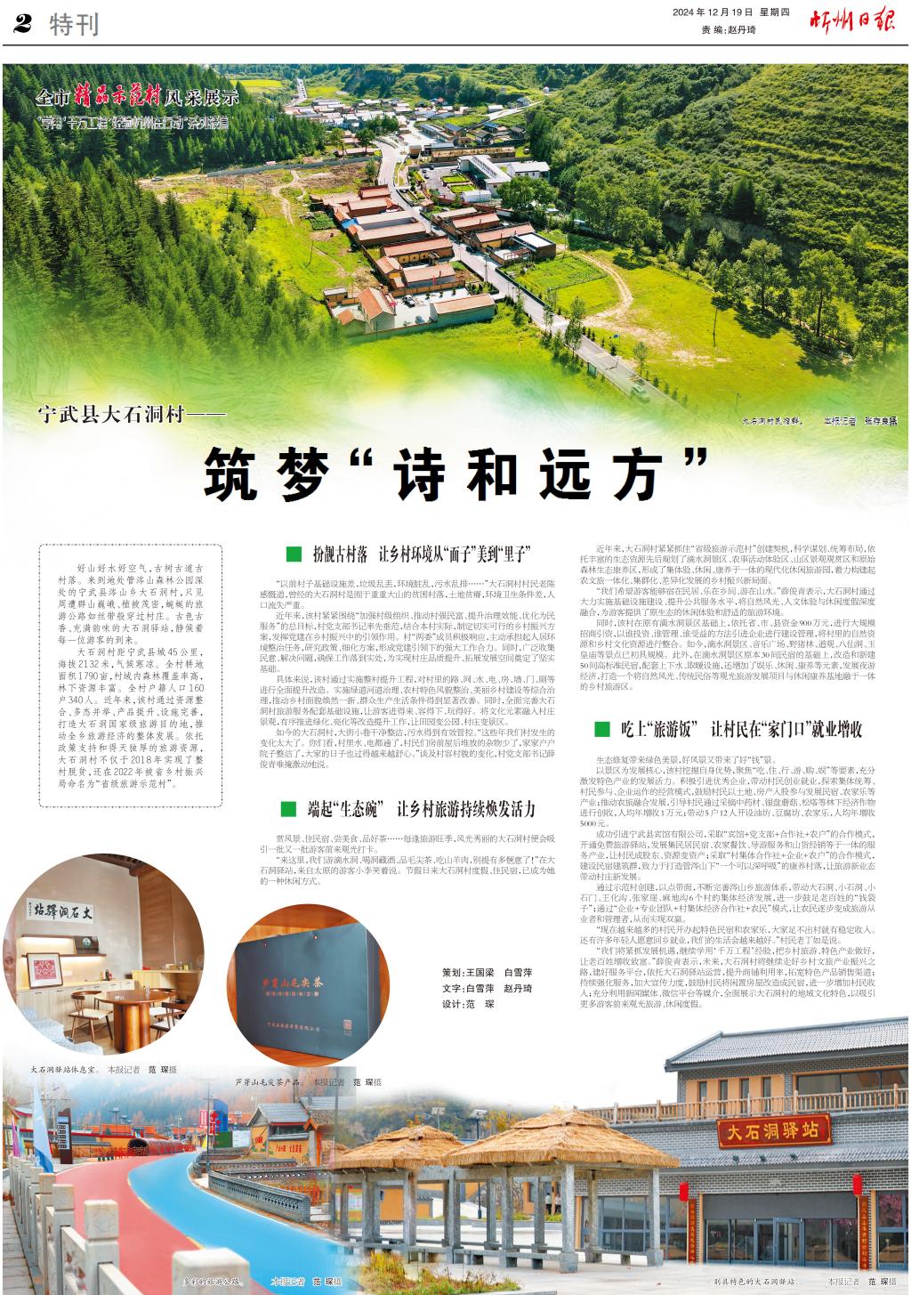 大石洞村距寧武縣城45公里,海拔2132米,氣候寒涼。全村耕地面積1790畝,村域內(nèi)森林覆蓋率高,林下資源豐富。全村戶籍人口160戶340人。近年來(lái),該村通過(guò)資源整合、多態(tài)并舉、產(chǎn)品提升、設(shè)施完善,打造大石洞國(guó)家級(jí)旅游目的地,推動(dòng)全鄉(xiāng)旅游經(jīng)濟(jì)的整體發(fā)展。依托政策支持和得天獨(dú)厚的旅游資源,大石洞村不僅于2018年實(shí)現(xiàn)了整村脫貧,還在2022年被省鄉(xiāng)村振興局命名為“省級(jí)旅游示范村”。