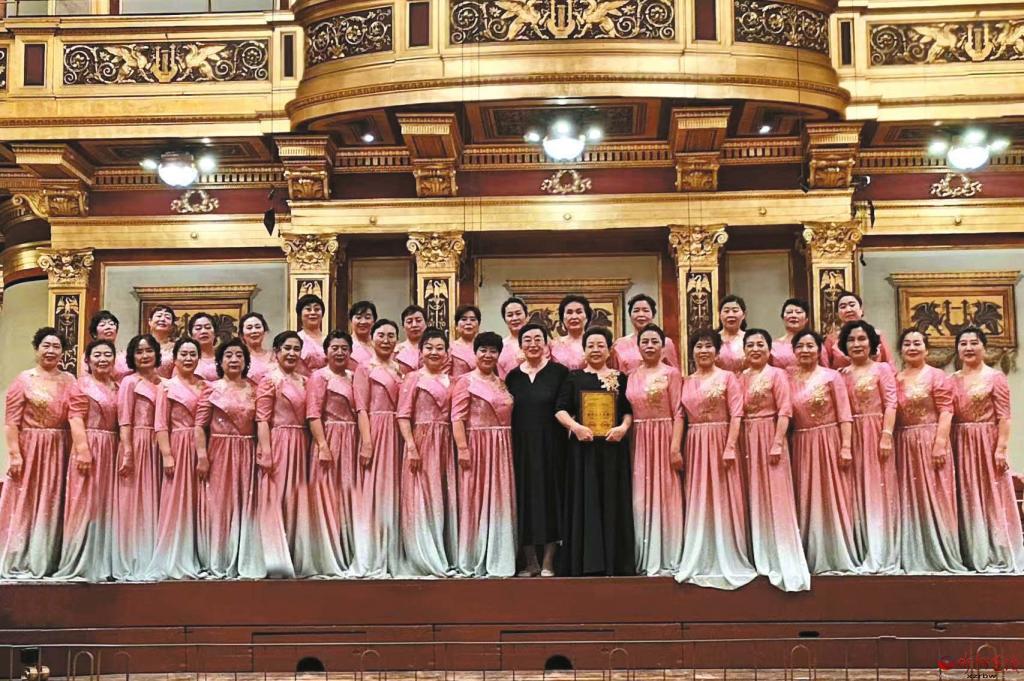 10月20日,奧地利維也納音樂(lè)大廳燈光璀璨,座無(wú)虛席,由中國(guó)老年協(xié)會(huì)舉辦的第七屆七彩夕陽(yáng)國(guó)際中老年藝術(shù)節(jié)活動(dòng)《領(lǐng)略藝術(shù)歐洲·尋夢(mèng)音樂(lè)之都》正在上演,來(lái)自忻州開(kāi)萊春之聲藝術(shù)團(tuán)的35名演員,深情演唱《桃花紅杏花白》等歌曲,用歌聲傳播中國(guó)文化。在此次活動(dòng)中,開(kāi)萊春之聲藝術(shù)團(tuán)獲得“國(guó)際交流金獎(jiǎng)”“最佳組織獎(jiǎng)”“優(yōu)秀指揮獎(jiǎng)”“優(yōu)秀伴奏獎(jiǎng)”“優(yōu)秀表演金獎(jiǎng)”。