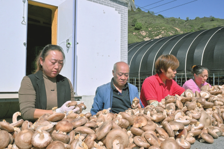 五臺(tái)縣石咀鎮(zhèn)后坪村香菇大棚給村民帶來(lái)好光景。