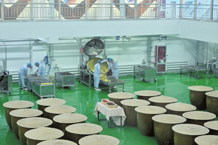 山西雁門(mén)王酒業(yè)有限公司10萬(wàn)KL高端有機(jī)黃酒產(chǎn)業(yè)園工人忙碌生產(chǎn)。