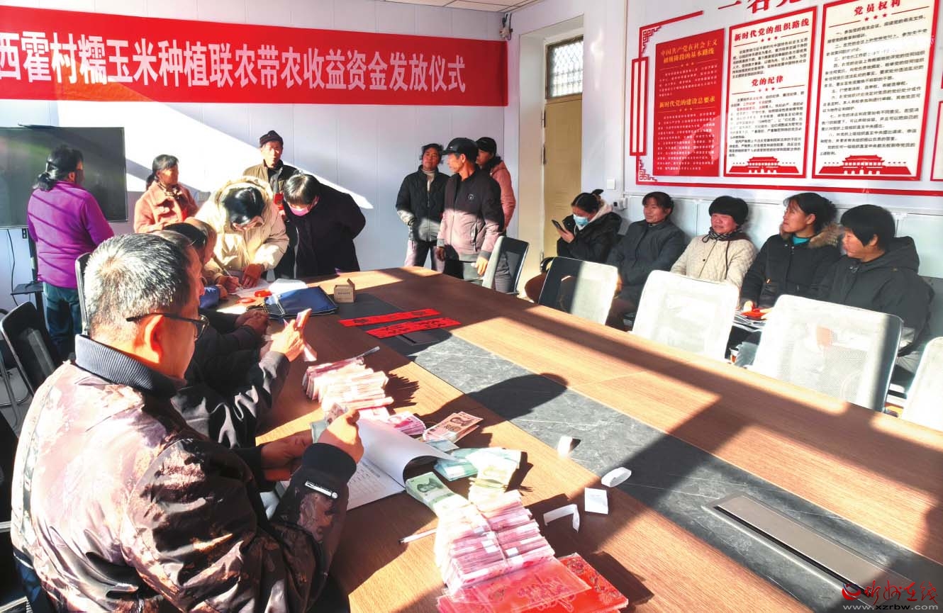 西霍村糯玉米種植聯(lián)農(nóng)帶農(nóng)收益資金發(fā)放儀式現(xiàn)場。