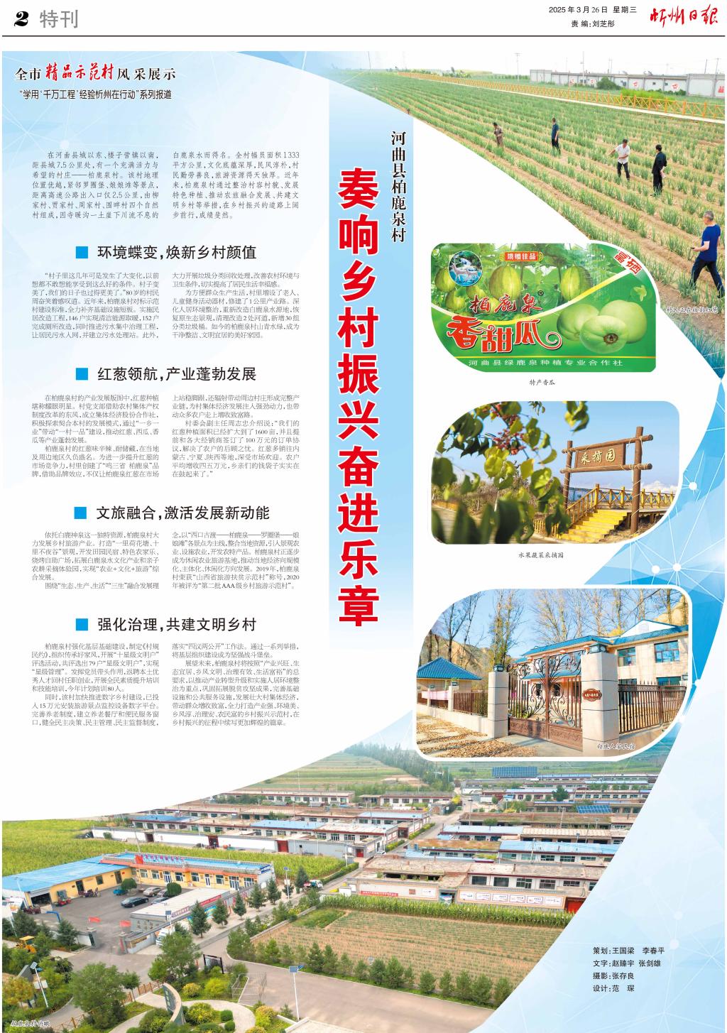 圍繞“生態(tài)、生產(chǎn)、生活”“三生”融合發(fā)展理念,以“西口古渡——柏鹿泉——羅圈堡——娘娘灘”各景點(diǎn)為主線,整合當(dāng)?shù)刭Y源,引入景觀農(nóng)業(yè)、設(shè)施農(nóng)業(yè),開(kāi)發(fā)農(nóng)特產(chǎn)品。柏鹿泉村正逐步成為休閑農(nóng)業(yè)旅游基地,推動(dòng)當(dāng)?shù)亟?jīng)濟(jì)向規(guī)?;?、主體化、休閑化方向發(fā)展。2019年,柏鹿泉村榮獲“山西省旅游扶貧示范村”稱(chēng)號(hào),2020年被評(píng)為“第二批AAA級(jí)鄉(xiāng)村旅游示范村”。