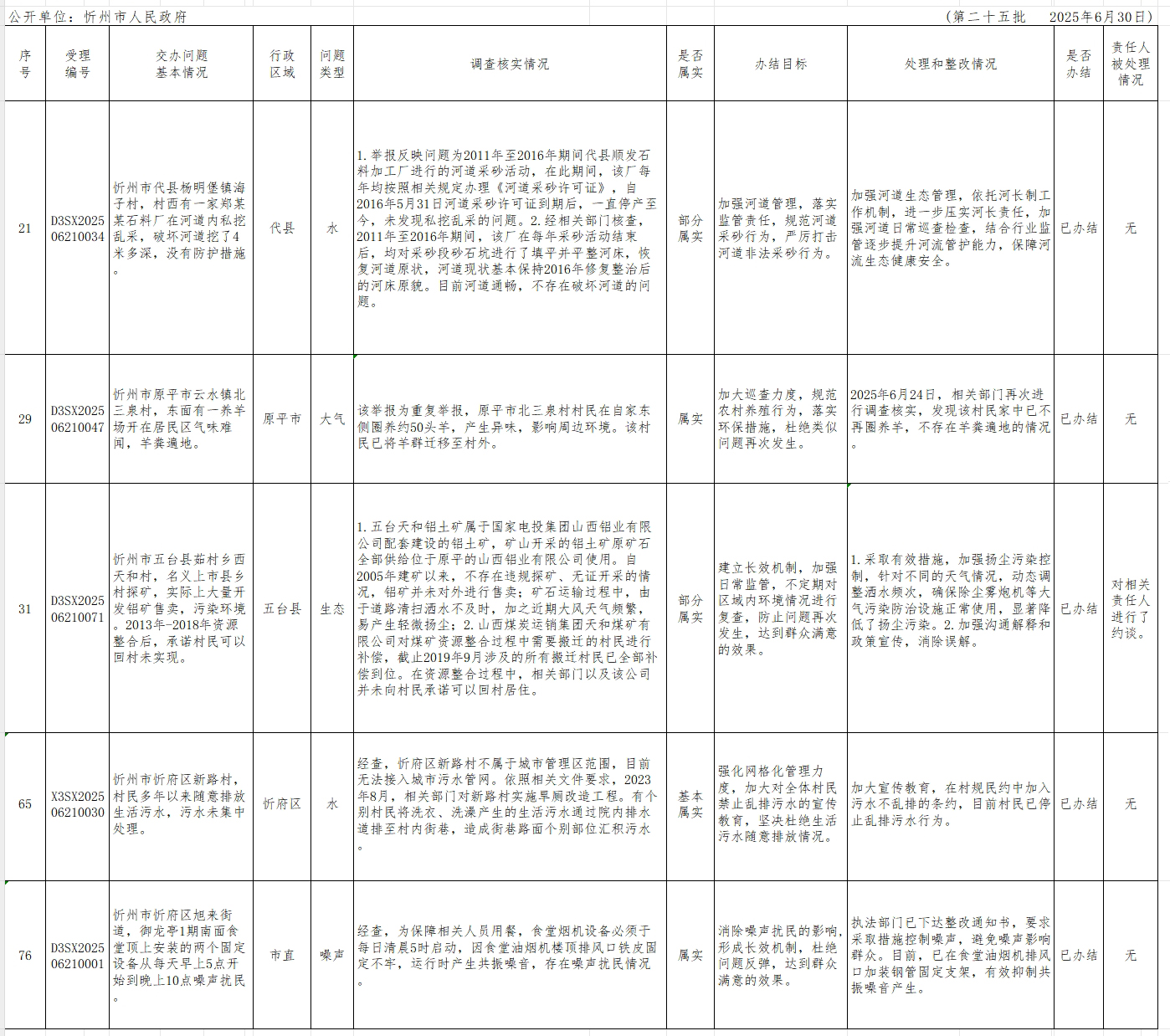 中央生態(tài)環(huán)境保護(hù)督察組群眾信訪舉報轉(zhuǎn)辦和邊督邊改公開情況一覽表(第二十五批)