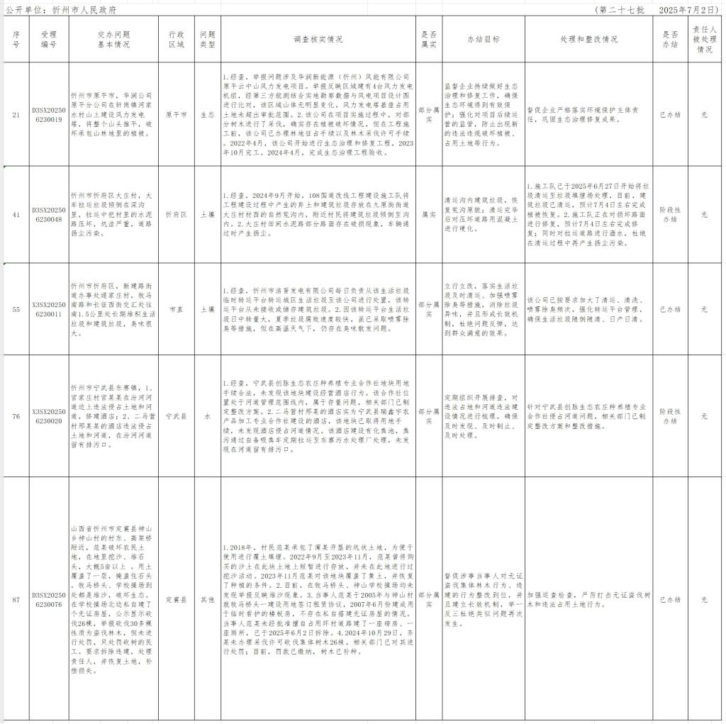中央生態(tài)環(huán)境保護(hù)督察組群眾信訪舉報(bào)轉(zhuǎn)辦和邊督邊改公開情況一覽表(第二十七批)