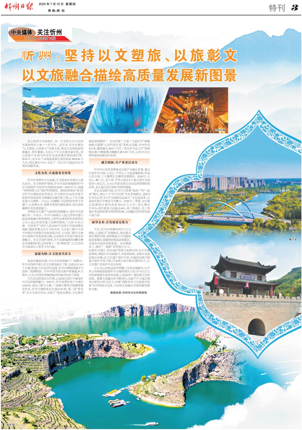 在山西省中北部地區(qū),有一片受到文化與自然雙重滋養(yǎng)的土地——忻州市。近年來,忻州市緊扣“以文塑旅、以旅彰文”發(fā)展主線,推動文化和旅游深度融合、相互賦能,不僅讓千年文化煥發(fā)新生機(jī),更讓旅游產(chǎn)業(yè)成為經(jīng)濟(jì)社會高質(zhì)量發(fā)展的新引擎。2024年,全市51個A級旅游景區(qū)接待游客2894.86萬人次,同比增長9.3%,交出了一份文化與旅游共生共榮的亮眼答卷。