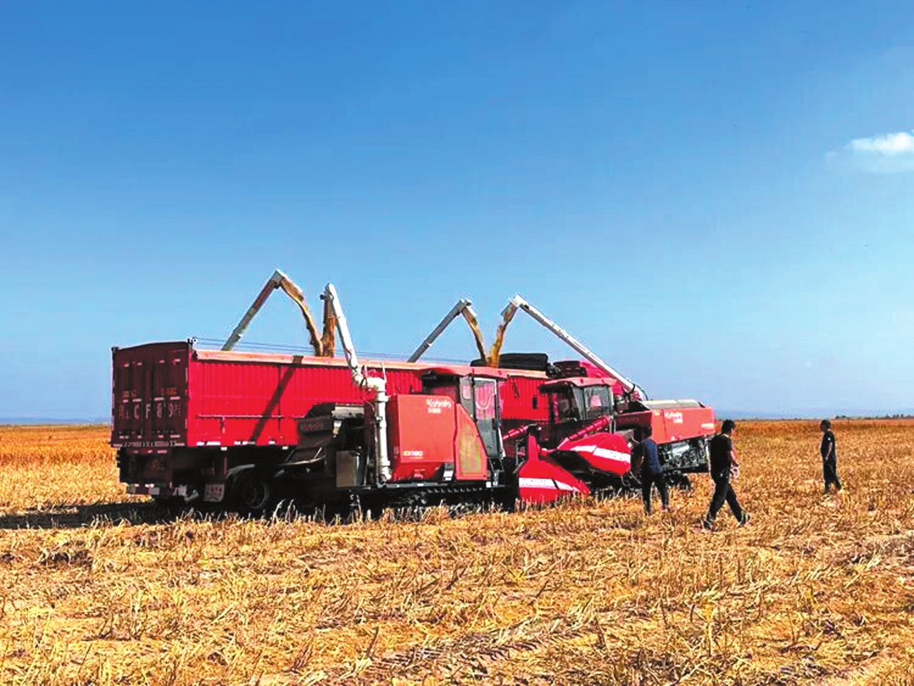 搭載北斗導航系統(tǒng)的聯(lián)合收割機作業(yè)現場
