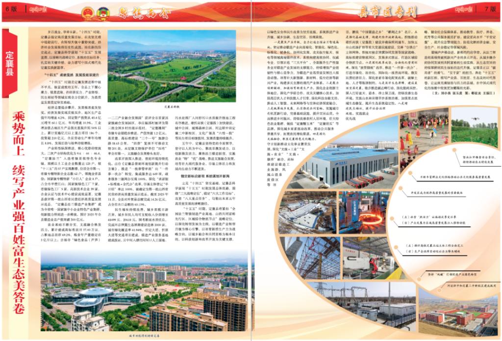 歲月流金,華章日新?!笆奈濉睍r(shí)期,定襄縣錨定高質(zhì)量發(fā)展目標(biāo),在攻堅(jiān)克難中砥礪前行,在轉(zhuǎn)型升級中蓄勢突破,經(jīng)濟(jì)社會發(fā)展取得歷史性成就。站在新的歷史起點(diǎn),定襄縣科學(xué)謀劃“十五五”發(fā)展藍(lán)圖,以清晰的戰(zhàn)略定位、系統(tǒng)的目標(biāo)任務(wù)、扎實(shí)的關(guān)鍵舉措,奮力譜寫中國式現(xiàn)代化定襄實(shí)踐新篇章。