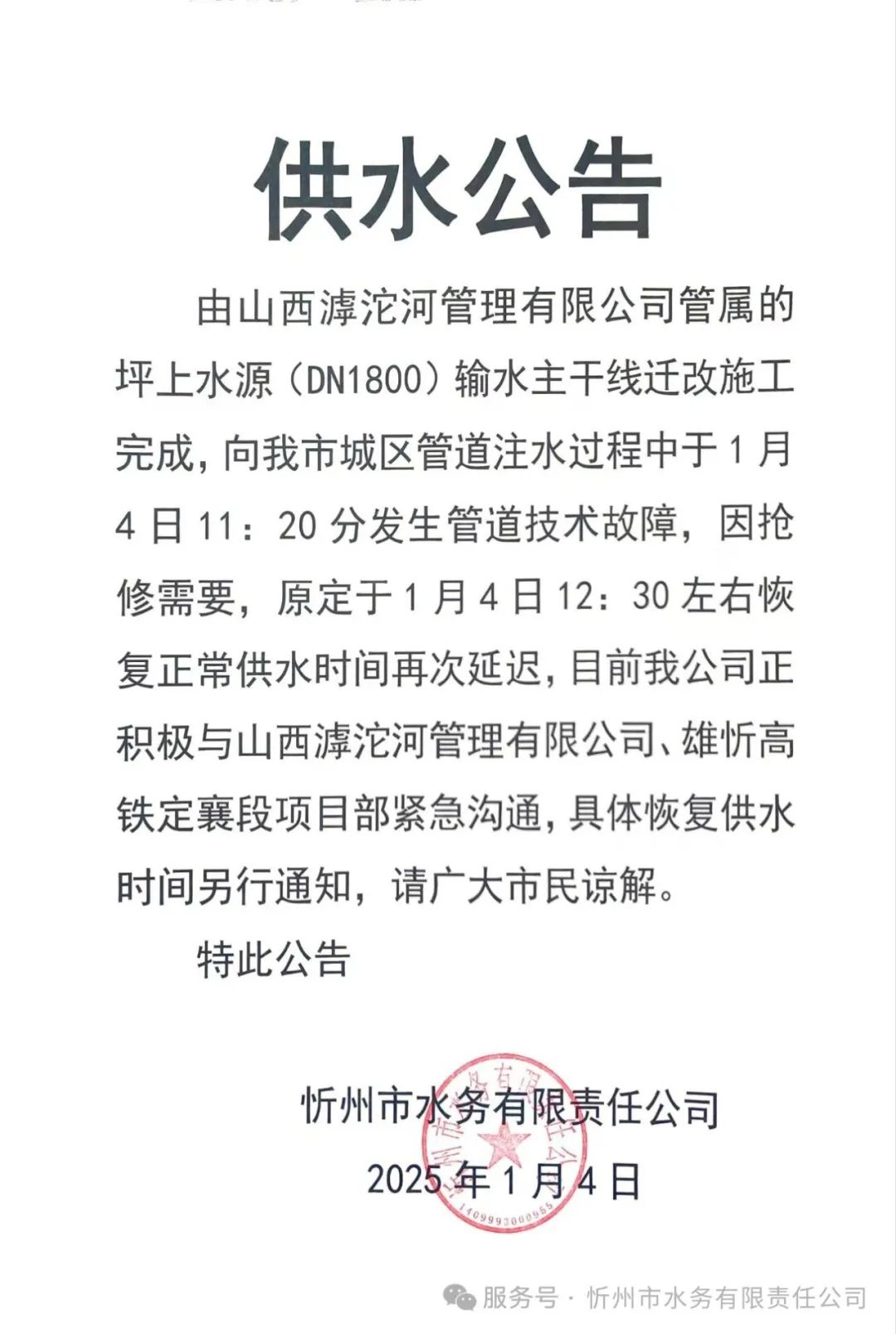最新消息!城區(qū)恢復供水時間延遲