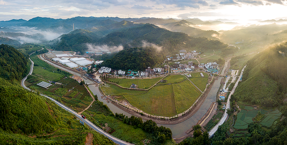 英德連樟中心村的晨曦。清遠(yuǎn)日?qǐng)?bào)全媒體記者 邱煒民 攝