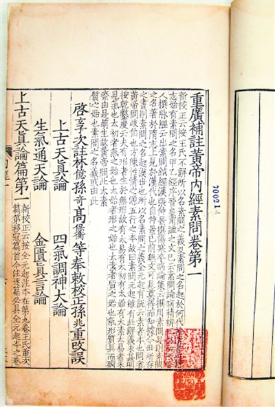 明嘉靖二十九年重廣補(bǔ)注黃帝內(nèi)經(jīng)素問二十四卷,甘肅省圖書館藏。《黃帝內(nèi)經(jīng)》提出對瘟疫要早發(fā)現(xiàn)早治療,治療后防止復(fù)發(fā)。