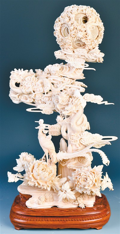 在常設(shè)陳列“嶺南民間百藝”展廳,可以看到更多巧奪天工的工藝品。象牙雕刻是廣州地區(qū)富有特色的一項(xiàng)傳統(tǒng)工藝,多層象牙球則是最能代表廣州象牙鏤雕技藝的作品?!斑@個(gè)象牙球有43層。”曾翔指著一件牙雕作品說(shuō),“它是將一塊完整的象牙鏤空為層層相套的球體,每一層都可以獨(dú)立轉(zhuǎn)動(dòng),球面上還有精細(xì)雕花?!痹缭谒未陀兄谱飨笱狼虻挠涊d,如今,象牙球最多已做到57層。