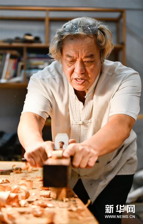8月25日,在天津職業(yè)大學(xué)辛全生大師木藝工作室,辛全生在用刨刀刮料。今年62歲的辛全生是天津市南開區(qū)傳統(tǒng)木工榫卯技藝的非遺代表性項目傳承人。2019年9月,天津職業(yè)大學(xué)為發(fā)展并傳承木工技藝,邀請辛全生作為老師給學(xué)生們授課,負責(zé)教授學(xué)生們榫卯結(jié)構(gòu)知識和木藝家具制作等實用技巧,并于2019年底在校內(nèi)建立辛全生大師木藝工作室。 辛全生出生于匠人家庭,他聽從父親的建議從16歲開始學(xué)習(xí)木工。40余年的木工生涯,辛全生經(jīng)歷過木工行業(yè)曾經(jīng)的紅火和后來的逐漸衰落,也曾在最艱難的時候做過別的營生。但無論如何,辛全生始終忘不了自己的木工身份?!袄献孀诹粝聛淼臇|西不能丟了,要傳承下去,否則將來的后代誰都不知道木工榫卯技術(shù)的存在了?!毙寥f。 近年來,有近百名不同職業(yè)、不同年齡的人慕名前來拜辛全生為師,學(xué)習(xí)傳統(tǒng)木工榫卯技藝。辛全生說,我會讓徒弟們學(xué)好木工榫卯技藝,讓中國的傳統(tǒng)手藝發(fā)揚光大。新華社發(fā)(孫凡越 攝)