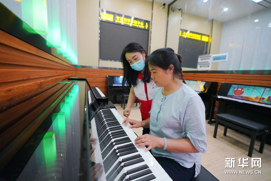 在湖南長沙縣文化館的“悅藝空間”,志愿者在教市民使用智慧鋼琴(6月10日攝)。新華社發(fā)(長沙縣文化館供圖)