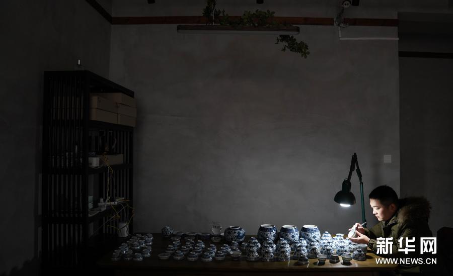 團隊負責(zé)人汪敏輝介紹,一只普通的青花茶杯,從成型到燒制成功,至少需經(jīng)10多名工匠之手,不容任何一個環(huán)節(jié)出錯,團隊成員總是努力把手藝做到極致。新華社記者 胡晨歡 攝