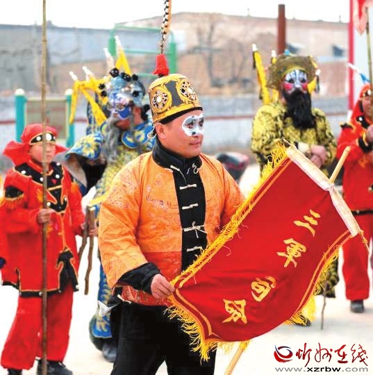 把古代戰(zhàn)爭(zhēng)場(chǎng)面演練成劇,表現(xiàn)多為騎兵對(duì)戰(zhàn),故稱(chēng)為大馬社火。今年春節(jié)期間,定襄北社西村大馬社火被錄制成視頻上傳后,成為最受歡迎的鬧紅火視頻之一,人們紛紛轉(zhuǎn)載,贊不絕口。剛剛過(guò)去的元宵節(jié),大馬社火也是定襄鬧元宵不可或缺的重頭戲,北社西村眾多村民自發(fā)組織起來(lái)耍社火,表達(dá)祈福驅(qū)邪,對(duì)風(fēng)調(diào)雨順、豐產(chǎn)增收的祈愿,形成了一道獨(dú)特的傳統(tǒng)民間文藝風(fēng)景,還吸引了山西省民間文藝家協(xié)會(huì)專(zhuān)家現(xiàn)場(chǎng)指導(dǎo),舉行了民間民俗文化調(diào)研座談會(huì)。