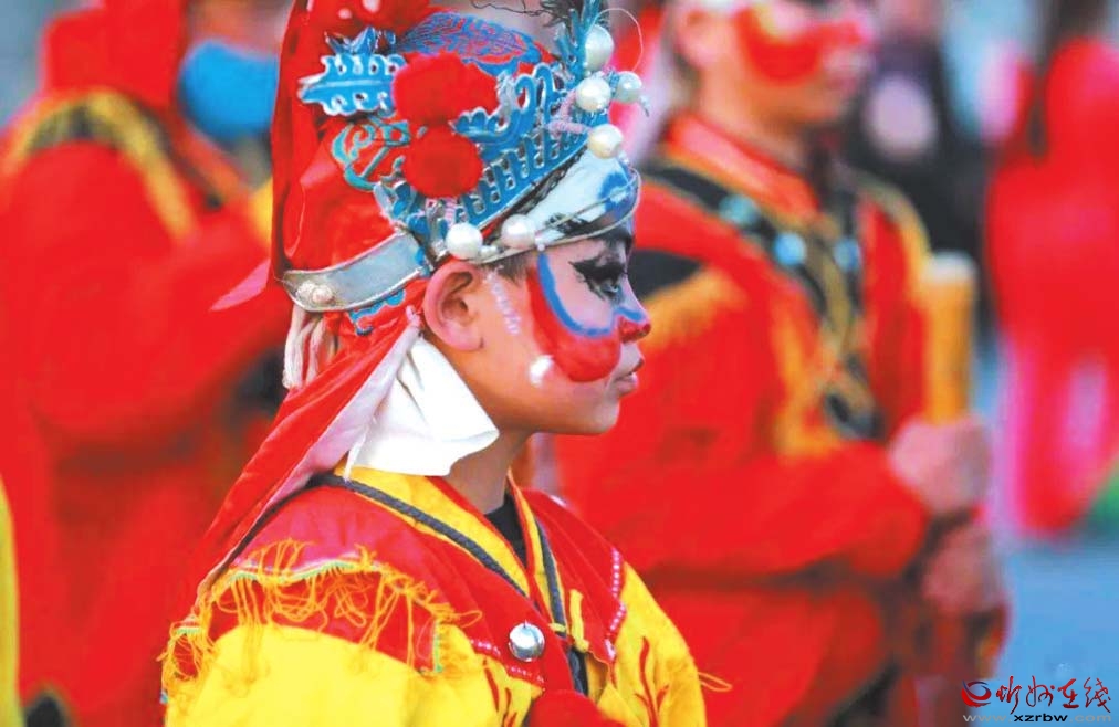 令人欣喜的是,今年的社火表演增加了很多新鮮血液,最小的表演者只有11歲。72歲的社火老藝人梁生偉是總教練,第十四代傳承人李軍平是演員兼教練。在他們帶領(lǐng)下,每一次演出從召集、化妝、著裝、配飾、道具,到列隊(duì)、祭旗、出征、行軍,以及演出中的傳丁、練兵、探馬、布陣、對(duì)壘、決戰(zhàn)、破陣等,每一個(gè)細(xì)節(jié)都有講究、說(shuō)法和規(guī)矩。其行為規(guī)范貫穿著樸素的古代儒家哲學(xué)思想,其陣法擺出的是玄妙的古代軍事戰(zhàn)陣,如對(duì)打表演的是北宋楊繼業(yè)楊家軍的武術(shù)套路,鼓樂(lè)擊打出的是原始戰(zhàn)鼓石破天驚的鼓點(diǎn)風(fēng)格,給人以極大的歷史韻味和藝術(shù)享受。