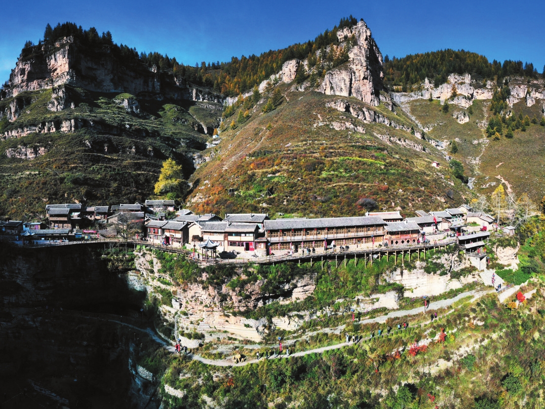 除古棧道、懸棺之外,更加奇特的地方還有建在懸崖峭壁上的懸空村。也許人們驚嘆渾源懸空寺的巧奪天工,但這里的懸空村更奇妙,王化溝、五花山、曹家梁三個村相距不遠(yuǎn),從山下向上望去,好似空中樓閣、天上宮闕。目前王化溝已作為旅游景點對外開放。隱沒在深山老林中的王化溝分布在大約一華里長的絕壁上,背倚懸崖,面臨百丈深淵。村中的房子大都臨崖而建,以木柱支撐,高低錯落,避風(fēng)向陽。這些房子建在懸崖上看似危險,實則非常堅固,至今還有清代的房子保存完好。世居于此的居民們更是守著大山的淳樸和安然生活,仿若陶淵明筆下的“武陵人”。