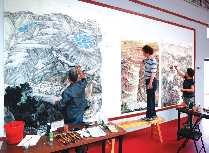 中國青綠山水畫院秘書長金石已是二度造訪:“每次感受都不同,黃土高原總能滋養(yǎng)心靈,激發(fā)無盡創(chuàng)作靈感?!贝诵兴で閾]毫,創(chuàng)作了《雪域高原》《春曉趙家溝》《翠綠趙家溝》三幅作品,并已將“金秋趙家溝”主題納入明年的創(chuàng)作藍圖。