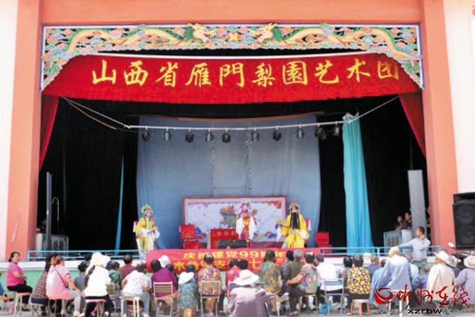 本報訊 薪火相傳梨園情,送戲下鄉(xiāng)頌黨恩。7月3日上午10時許,代縣峨口鎮(zhèn)上木角村委會大院的“瑞祥舞臺”上,鑼鼓鏗鏘,喧樂縈耳,熱鬧非凡,代縣雁門梨園藝術(shù)團(原代縣峨口退休老干部戲迷樂開心藝術(shù)團)正在這里演出,與該村黨員干部群眾共慶黨的99周年華誕,歌頌黨的恩情。演職人員以群眾喜聞樂見的形式,抒發(fā)老干部愛黨、愛國,永遠跟黨走的豪情壯志。