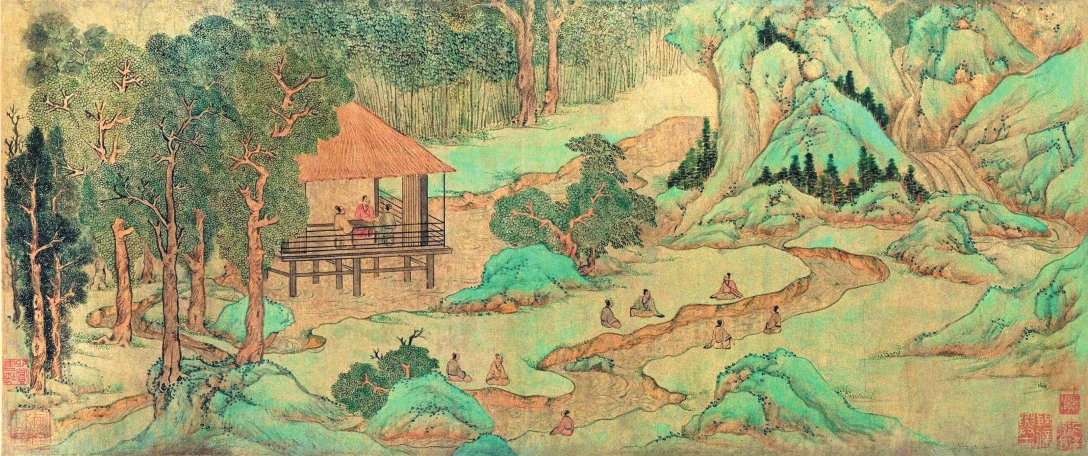 自宋代起,商賈或官宦常邀請好友、文人、畫師于亭中雅聚,作飲酒、和詩、品茗、撫琴的風雅活動?!锻ひ分惺珍浟税儆嗥び洠渲芯陀型豸酥短m亭集序》、歐陽修《醉翁亭記》《豐樂亭記》、蘇軾《放鶴亭記》等。刺史歐陽修與民同樂:“俯仰左右,顧而樂之。于是疏泉鑿石,辟地以為亭,而與滁人往游其間。”亭成為他表達人生追求、人格志向的物象,而亭記描述的內(nèi)容也已遠超建筑物本身。亭子的存在不僅是為觀景、停歇、雅集,文人的喜好與情感,也讓亭子逐漸成為一種顯著的文化符號。
