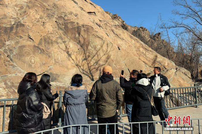 春節(jié)期間,游客在賀蘭山巖畫(huà)遺址公園參觀游覽。 中新網(wǎng)記者 李佩珊 攝