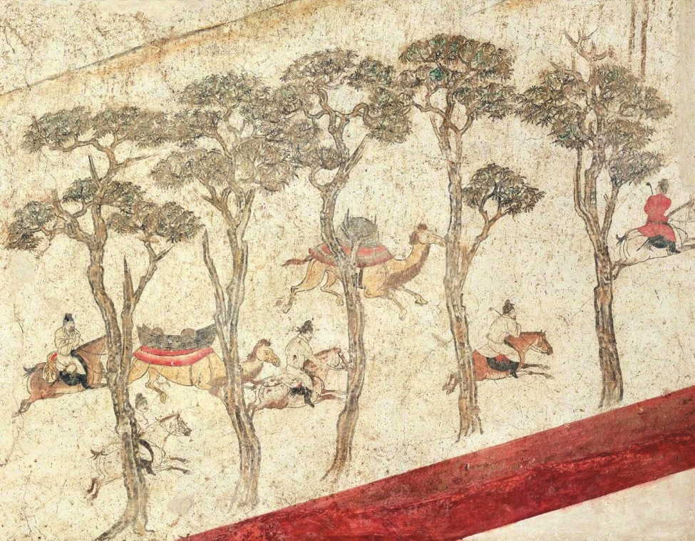 章懷太子墓壁畫《狩獵出行圖》局部