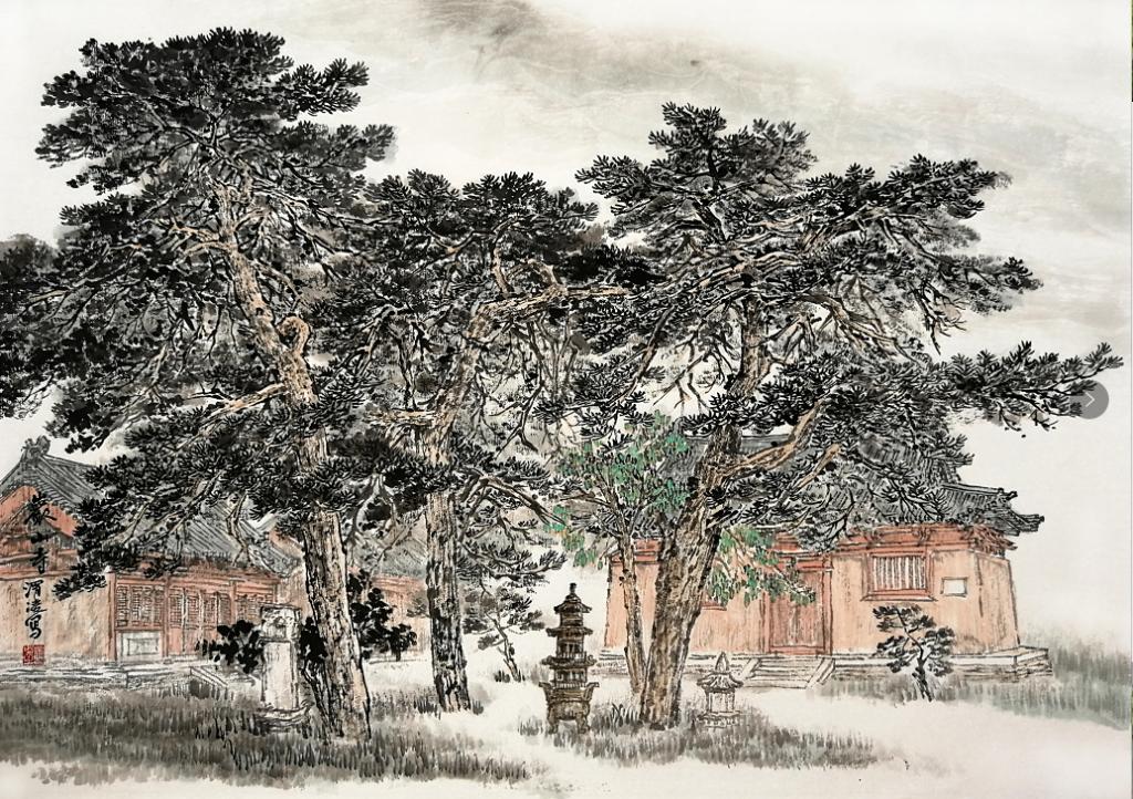后來(lái)因?yàn)樗L畫(huà)上取得的成績(jī),調(diào)到了忻府區(qū)文聯(lián)工作。條件好了,畫(huà)的畫(huà)更多了,畫(huà)風(fēng)依然樸實(shí)親切,給人一種視覺(jué)的舒適感。這幾年他是在一路前進(jìn)的,他筆下的線條清朗有力,墨色變化也更加豐富,畫(huà)中有了渾厚華滋的氣象。細(xì)看他的畫(huà),樸實(shí)中蘊(yùn)藏著精巧,拙拙的行筆中偶露鋒厲,給畫(huà)面帶來(lái)活力生機(jī)。我們?cè)谝黄饘?xiě)生,他在畫(huà)面經(jīng)營(yíng)上、構(gòu)圖處理上總能給人意想不到的驚喜。畫(huà)面虛實(shí)處理把握的恰到好處,又能準(zhǔn)確表現(xiàn)自然原貌的神采。于不知不覺(jué)中將自己的審美和情感融入了畫(huà)中,完成的寫(xiě)生總比自然景色更加生動(dòng)、更吸引人的目光,但又讓你看不出他是在哪里做了手腳。