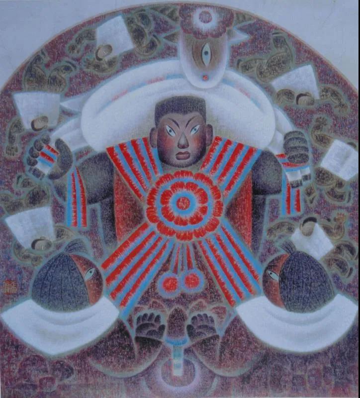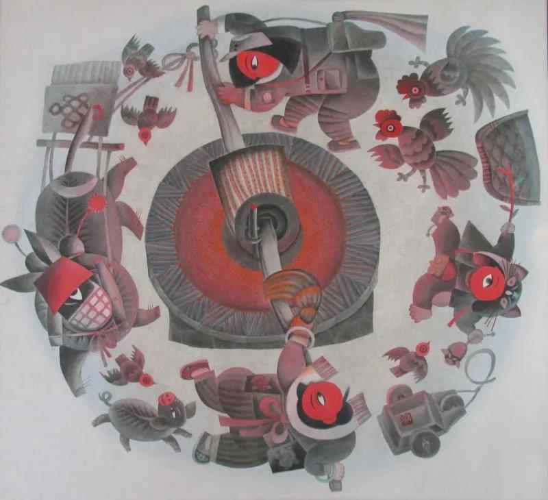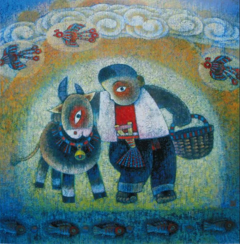 1973年開始自學(xué)美術(shù)并業(yè)余創(chuàng)作,專國畫兼及水粉、漫畫、剪紙。數(shù)十年來廣采博收,上溯遠古巖畫、畫像磚、石、帛畫、洞窟壁畫、院體工筆以及民間剪紙、泥塑,面塑、年畫;橫向上油畫、版畫、裝飾、現(xiàn)代設(shè)計乃至西方藝術(shù)皆有涉獵吸收,融匯貫通,形成了一種既富傳統(tǒng)民族特色、鄉(xiāng)土味濃郁,又極具現(xiàn)代感的、自成一格的個人風(fēng)格。