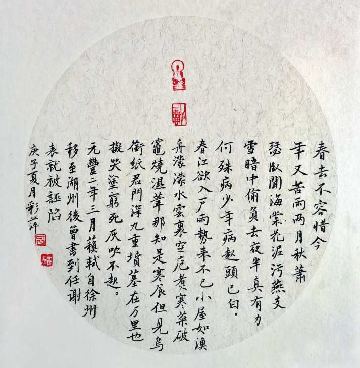 遺山詩社近期刊登的呂彩萍作品專輯,內(nèi)容上大致可分兩類:一是有關(guān)抗疫的時事情狀;二是吟詠梅蘭竹菊等花草植物以及四季更替、重要節(jié)日等,托風(fēng)雅之詞,明自我心性。從藝術(shù)角度看,這些作品或沉思、或靈動,思緒開闊,韻致嫣然,詞畫有機(jī)相融,用典自如妥切,抒情性于辭采,詠雅志而不自矜。涵詠其間,若瓊花滿地,玉階生輝,天籟清風(fēng)吹散密云,月下疏影暗吐清香。仔細(xì)品讀,可感受到作品呈現(xiàn)出的四種藝術(shù)之美,本文試作解讀。