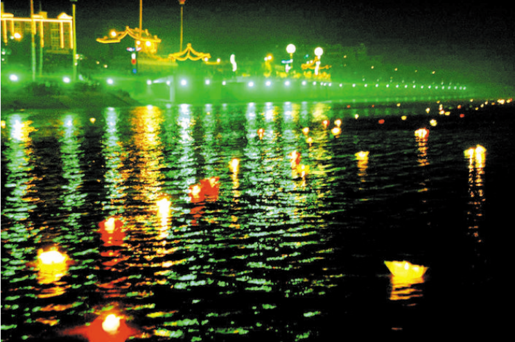 中元節(jié)這一天也有放河燈的習(xí)俗,最早源于印度佛教,傳入中國(guó),是由寺院興起,起初有盂蘭盆會(huì),在寺院里,誦經(jīng)供食,焚化紙船,謂之法船,可以“渡出冥孤獨(dú)之魂”,也是一種宗教儀式。后來(lái)這種形式,逐漸傳入民間社會(huì),有了在河流中放河燈的習(xí)俗。試想天上人間,天上明月高空,繁星點(diǎn)點(diǎn),地下一排排的紙船,在暗夜的黃河流水中猶如萬(wàn)點(diǎn)螢光,向著遙遠(yuǎn)的神秘方向漂流,讓人產(chǎn)生一種無(wú)限的想象,因此,在中元節(jié)放河燈,就是自己和心靈的一種對(duì)話,也是活著的人們對(duì)逝去的人們的一種懷念方式。當(dāng)然河曲河燈節(jié),在祭祖、祭禹的同時(shí),也加入了特定群體。那些在黃河水患中離去的人,那些在戰(zhàn)亂中逝去的人,那些在走西口謀生中失蹤的人,都成為被祭奠的亡靈,體現(xiàn)了其節(jié)日的地域性。