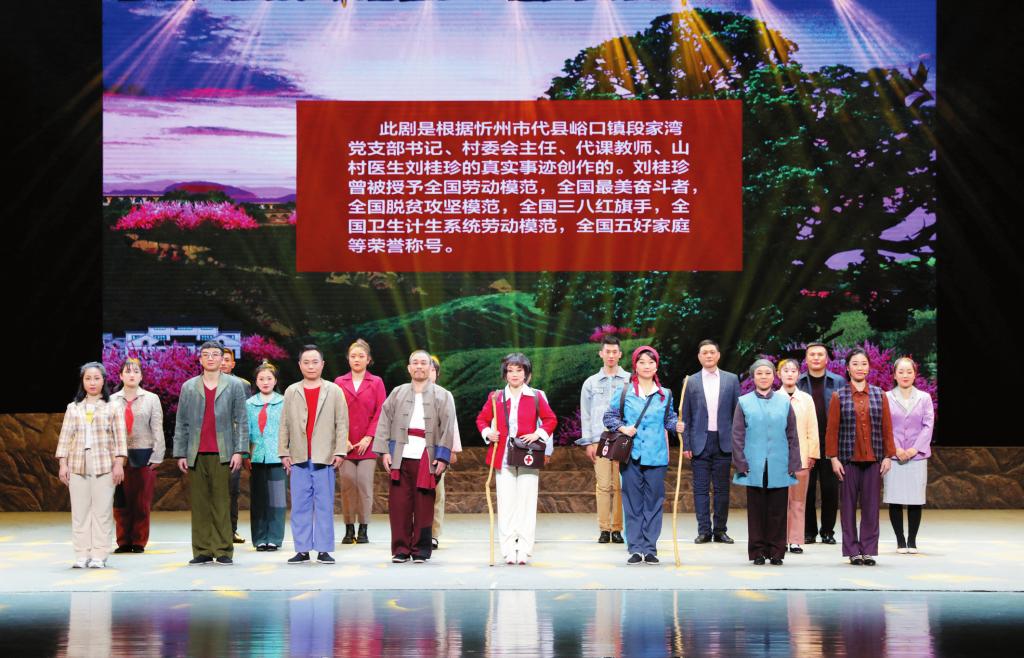 得知自己飾演女主角柳玉珍,演員蘇瑞芳背后做了很多功課,親自到段家灣與原型劉桂珍“零距離”接觸。聽(tīng)完桂珍大姐的故事,蘇瑞芳內(nèi)心無(wú)比震撼,為了更好地塑造角色,一有空閑就拉著搭檔“開(kāi)小灶”,反復(fù)打磨動(dòng)作?!拔枧_(tái)上的每個(gè)人物都有生活原型,每段劇情都是根據(jù)真實(shí)事件改編而來(lái)。”蘇瑞芳動(dòng)容地說(shuō),“現(xiàn)實(shí)中桂珍大姐遇到的情況可能比舞臺(tái)上表現(xiàn)得更困難,但她卻始終不忘初心,扎根農(nóng)村,身兼‘四職’,承擔(dān)起脫貧攻堅(jiān)領(lǐng)頭雁、治病救人好醫(yī)生、教書育人好老師、扎根基層好黨員等多重角色,以引領(lǐng)村民脫貧致富為己任,忠實(shí)踐行一名共產(chǎn)黨員的神圣使命。她身上的優(yōu)秀品質(zhì)值得我們每一個(gè)人學(xué)習(xí),我為自己能夠有機(jī)會(huì)飾演她感到驕傲自豪!”