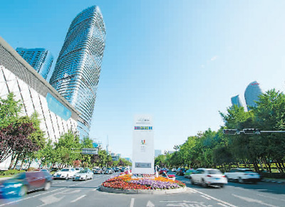 位于成都天府大道的大運會倒計時裝置。