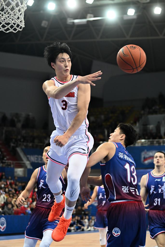 12月11日,廣東隊球員胡明軒(上)在籃下傳球。新華社記者 孫凡越 攝 廣東隊客場挑戰(zhàn)天津隊。首節(jié)末段,廣東隊依靠一波10:2的攻勢建立起優(yōu)勢。次節(jié)兩隊進(jìn)入對攻模式,廣東隊以52:46保持領(lǐng)先。下半場主隊詹姆斯爆發(fā),單節(jié)砍下26分,帶領(lǐng)天津隊完成反超。末節(jié)廣東隊展開反擊,周琦最后時刻連續(xù)補(bǔ)籃得分,并搶下關(guān)鍵進(jìn)攻籃板,幫助廣東隊實現(xiàn)逆轉(zhuǎn)。 此役,廣東隊沃特斯砍下38分11次助攻,周琦貢獻(xiàn)25分13個籃板。天津隊詹姆斯得到51分15個籃板。
