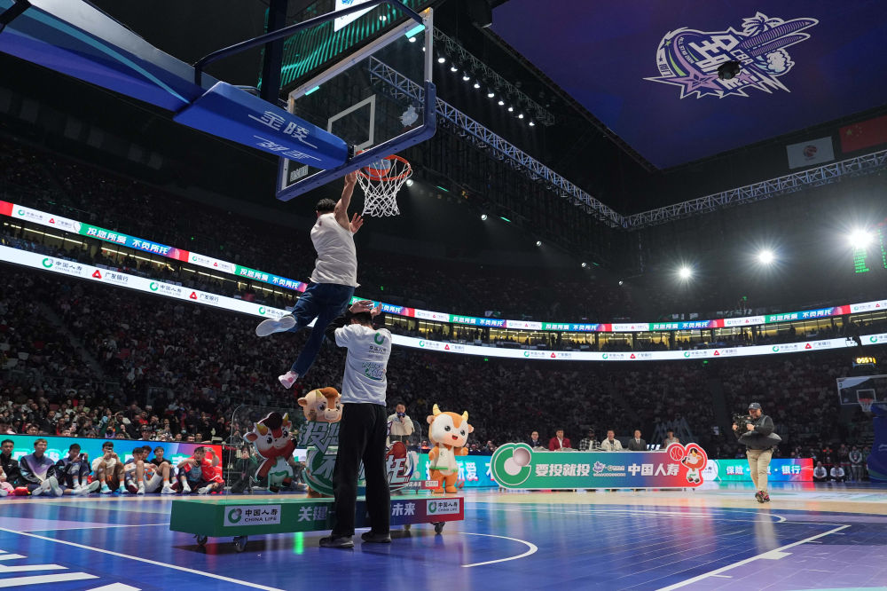 中場休息期間進行了三個單項賽的比拼。主場作戰(zhàn)、來自福建隊的黎伊揚獲得技巧挑戰(zhàn)賽冠軍。山西隊原帥在三分球大賽決賽投出25分,以一分優(yōu)勢險勝龍獅隊賈明儒??刍@大賽的冠軍是特邀外卡球員萬磊,他在比賽中穿著牛仔褲飛躍一人,完成“蝎子擺尾”式的扣籃。