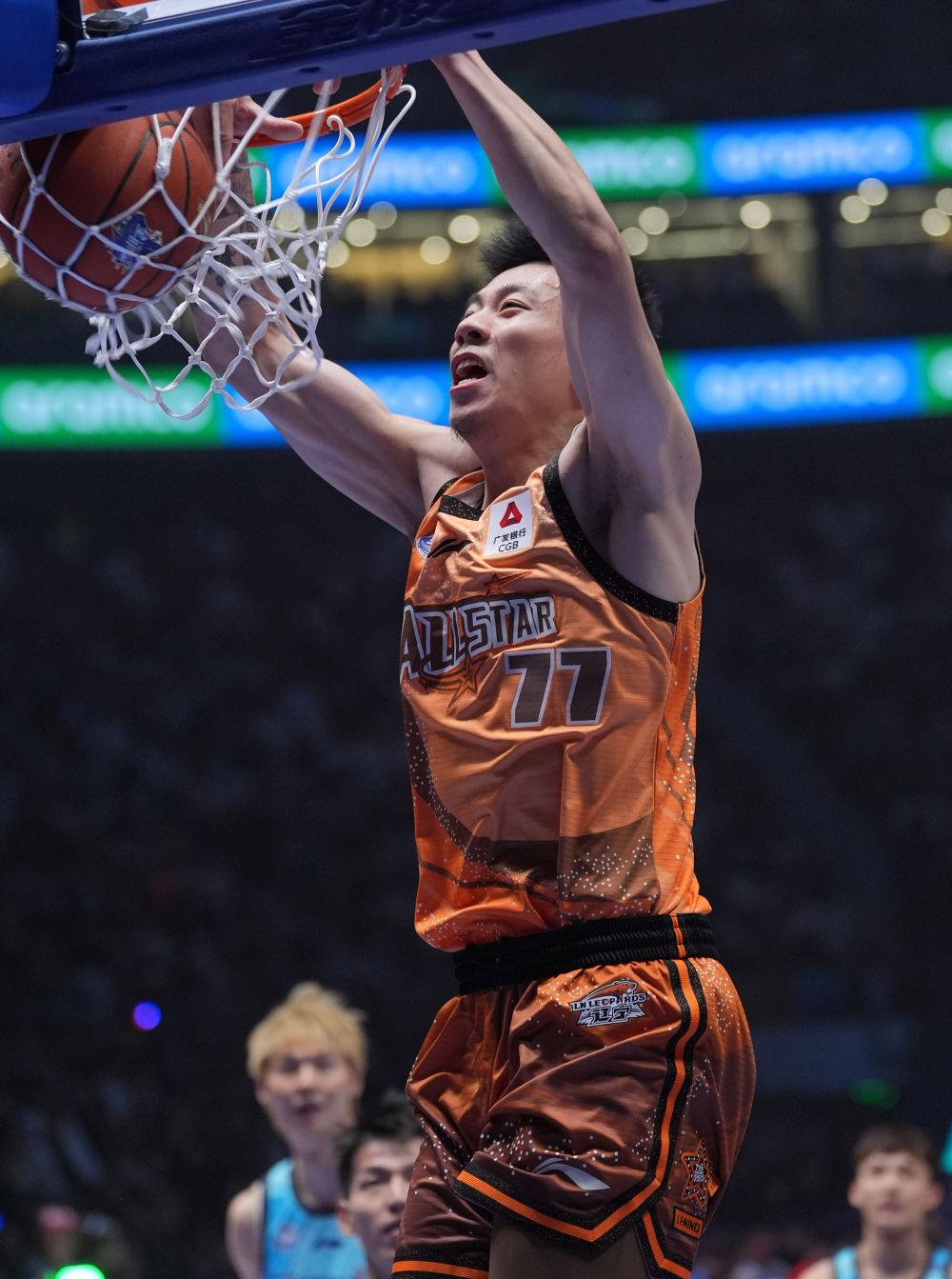 胡金秋的扣籃拉開當(dāng)晚比賽的大幕,齊麟表現(xiàn)搶眼命中三記三分球,首節(jié)拿下13分。遼寧“雙子星”趙繼偉和張鎮(zhèn)麟秀出“空中接力”把現(xiàn)場氣氛拉滿,后者本節(jié)多次上演暴扣,讓現(xiàn)場觀眾大飽眼福。第二節(jié)兩隊頻頻在三分線外比拼射術(shù),半場過后北區(qū)隊以71:61領(lǐng)先。
