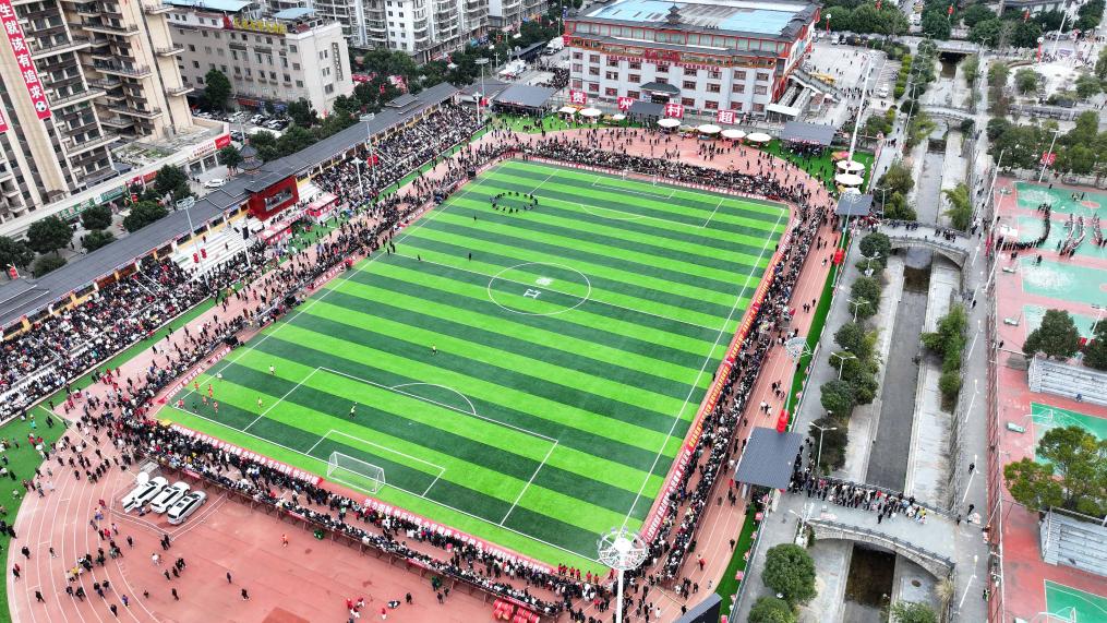 2月3日,觀眾在“村超”賽場(chǎng)等待活動(dòng)開始(無人機(jī)照片)。新華社記者 劉續(xù) 攝