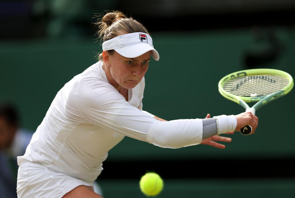 同樣28歲的克賴奇科娃則在隨后一場半決賽中遭遇2022年溫網(wǎng)冠軍萊巴金娜。個(gè)高腿長發(fā)球好的4號(hào)種子萊巴金娜第一盤打得輕松寫意,4:0開局后以6:3拿下。