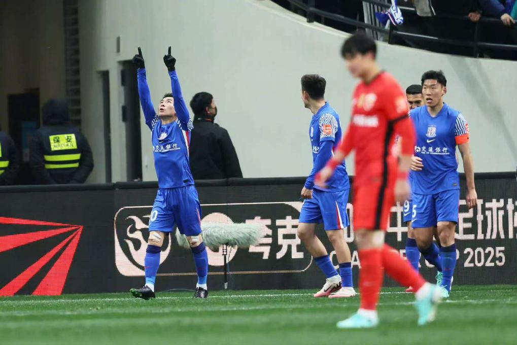 2月7日,上海申花隊(duì)球員于漢超(左)在進(jìn)球后慶祝。圖片來(lái)自上海申花足球俱樂(lè)部官方微博