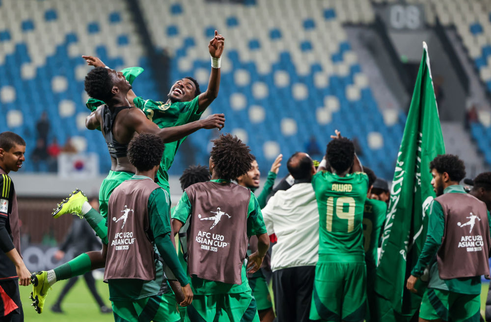 率先進行的一場半決賽在沙特隊和韓國隊之間展開,韓國隊場上占優(yōu),但多次錯失破門良機,比賽被拖入點球大戰(zhàn),在四分之一決賽中撲出中國隊點球的沙特隊門將尚基提延續(xù)神勇,撲出韓國隊兩個點球,馬赫達維罰入制勝點球,幫助沙特隊3:2勝出。