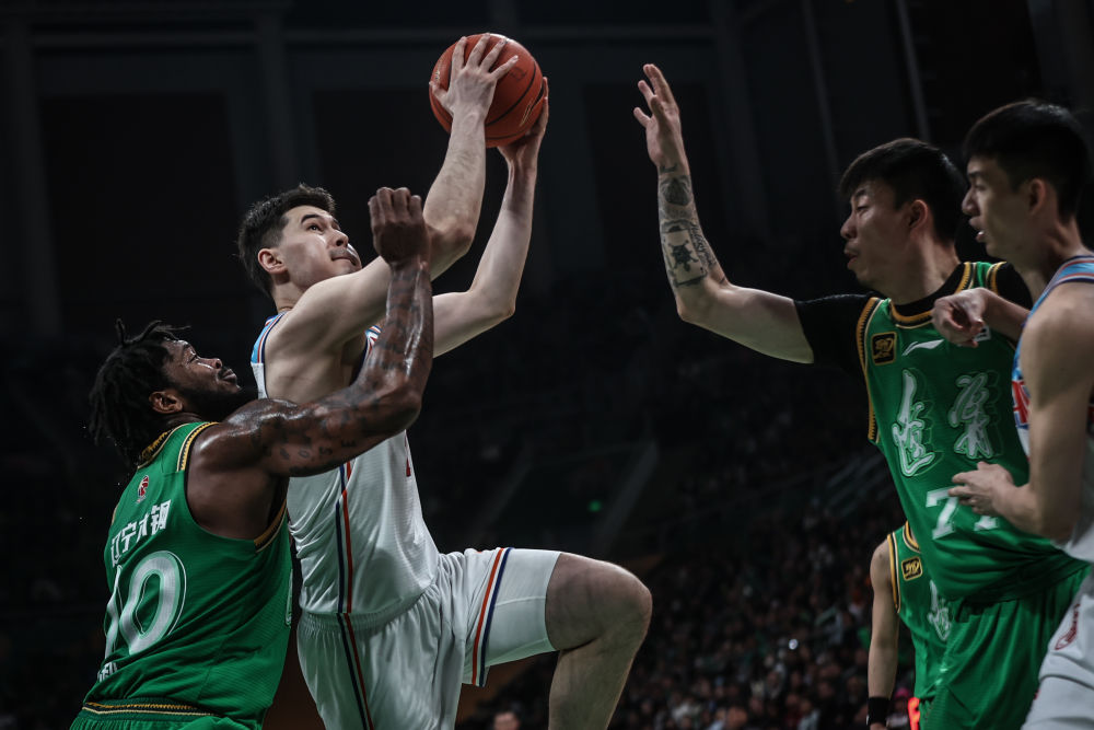 遼疆大戰(zhàn)跌宕起伏,比賽懸念留到最后一刻。盡管核心球員趙睿、李炎哲缺陣,加上齊麟腳腕受傷無法出戰(zhàn),新疆隊(duì)輪轉(zhuǎn)陣容略顯單薄,但仍給遼寧隊(duì)造成不小麻煩。遼寧隊(duì)趙繼偉和弗格先后串聯(lián)球隊(duì),里突外投撕開對(duì)手防線,迫使新疆隊(duì)超過5分鐘沒有運(yùn)動(dòng)戰(zhàn)得分,以30:19結(jié)束首節(jié)。次節(jié),新疆隊(duì)充分利用籃板球優(yōu)勢,一度將分差追至2分,但球隊(duì)半場仍以49:55落后于遼寧隊(duì)。