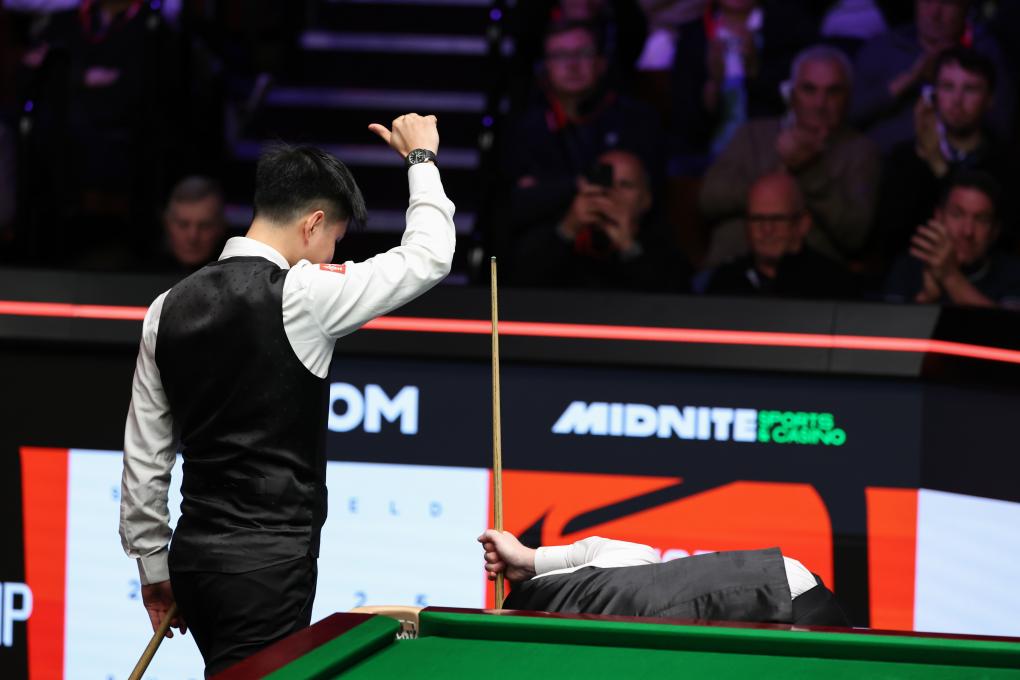 28歲的趙心童因觸碰賭球大忌,被世界職業(yè)臺球和斯諾克協(xié)會(世臺聯(lián))禁賽20個月,去年9月復出,下賽季才能重返斯諾克職業(yè)巡回賽。本次世錦賽,趙心童以業(yè)余球員身份連闖四輪資格賽后獲得正賽資格。面對去年世錦賽決賽選手瓊斯,趙心童完全掌握主動,20日取得7:2領先,21日以10:4結束戰(zhàn)斗,繼2022年之后又一次在謝菲爾德的克魯斯堡劇院打進第二輪。