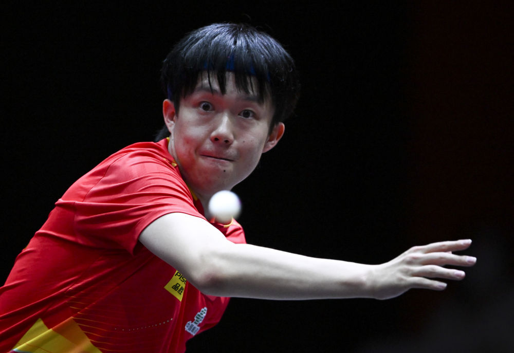 5月20日,王楚欽在比賽中回球。新華社記者 賀長山 攝
