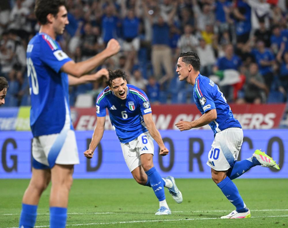 6月9日,意大利隊(duì)球員拉斯帕多里(右)慶祝進(jìn)球。新華社發(fā)(阿爾貝托·林格利亞攝)