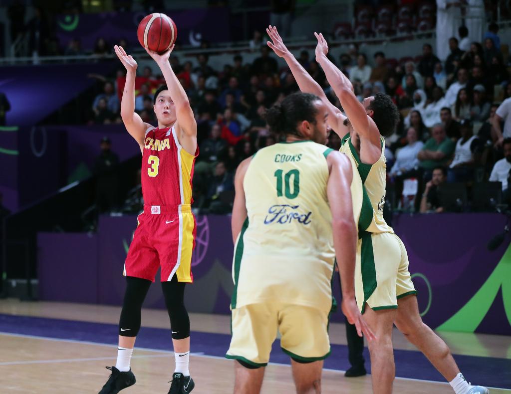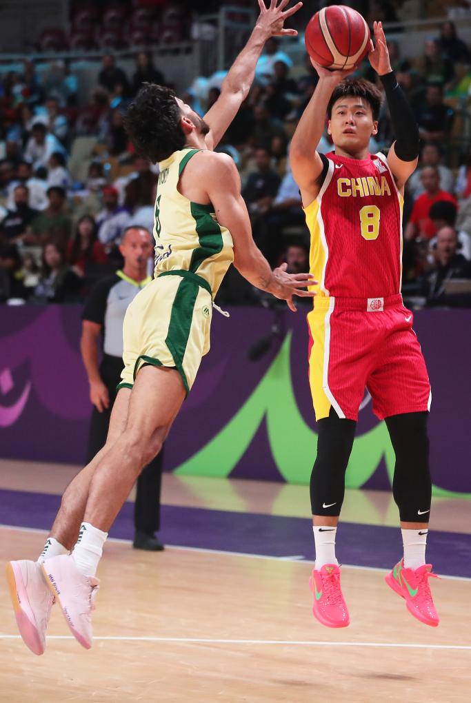 進(jìn)入次節(jié)比賽,中國隊進(jìn)攻手感更加火熱,王俊杰內(nèi)外線連續(xù)命中,幫助中國隊一度將分差拉開到15分。隨后,澳大利亞隊發(fā)揮出在內(nèi)線攻防兩端的優(yōu)勢,逐漸縮小分差。關(guān)鍵時刻,胡明軒連續(xù)命中三分穩(wěn)住領(lǐng)先局面,中國隊以46:42結(jié)束上半場。