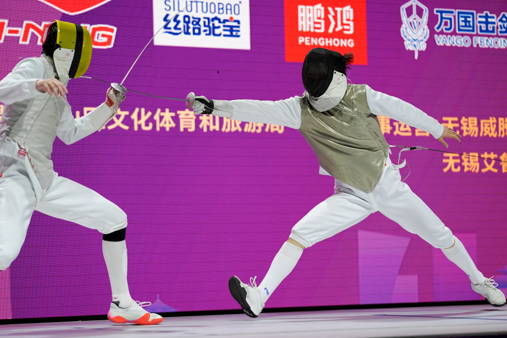 許杰(右)與陳海威在男子花劍個人賽決賽中