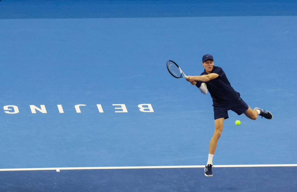 9月25日,辛納在比賽中回球。新華社發(fā)(馬子涵攝)
