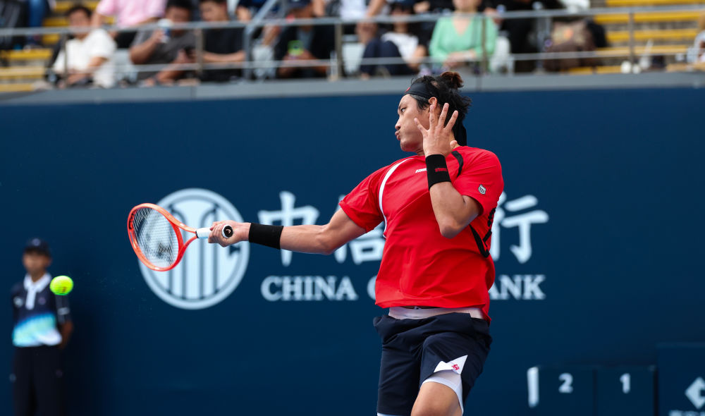 9月25日,張之臻在比賽中回球。新華社發(fā)(馬子涵攝)