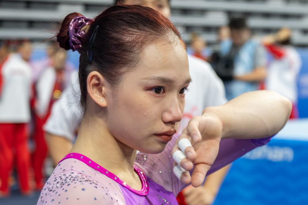 11月13日,廣東隊(duì)選手歐鈺珊在比賽后落淚。新華社記者 杜子璇 攝