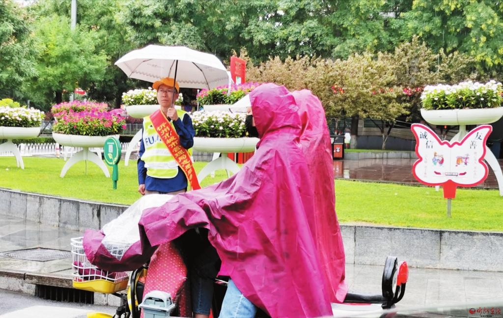 8月31日7點(diǎn)40分,我市城市管理局志愿者早早來到執(zhí)勤崗位,在風(fēng)雨中配合交警在長(zhǎng)征街與七一路口維持交通秩序,對(duì)橫穿馬路、亂闖紅燈等不文明交通行為進(jìn)行勸導(dǎo),引導(dǎo)市民遵守交通法規(guī),提高安全意識(shí),用實(shí)際行動(dòng)為創(chuàng)建文明城市做貢獻(xiàn)。曹建華 攝